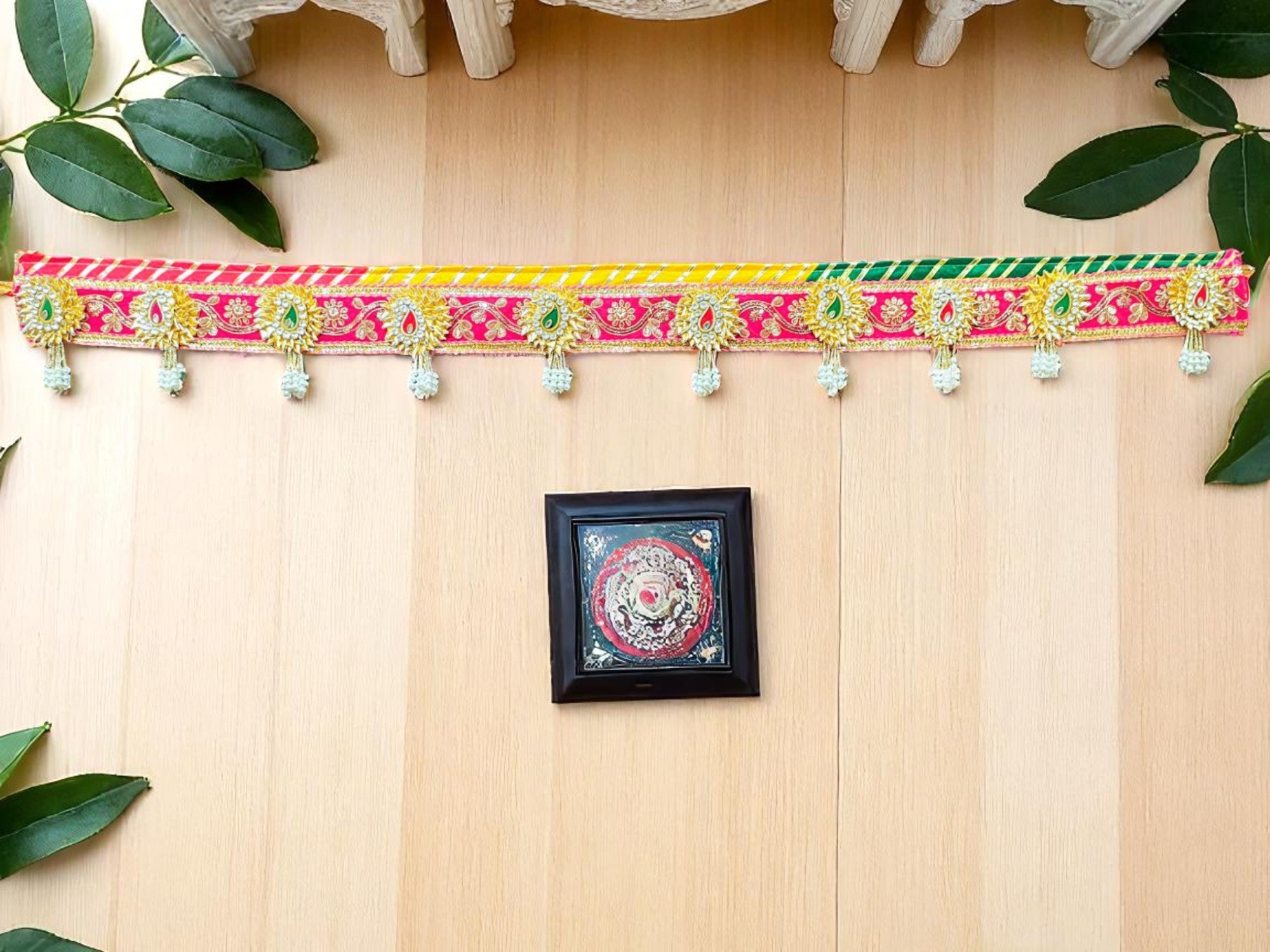 The striking combination of rani pink, green, and yellow makes it a perfect fit for celebrations like Diwali, Navratri, weddings, pooja ceremonies, or housewarmings. Lightweight and easy to hang, it serves as a beautiful welcome for your guests while adding cultural warmth to your space.